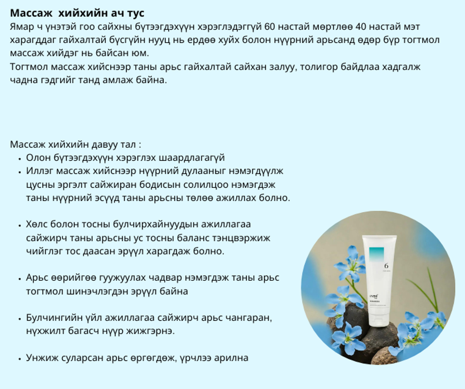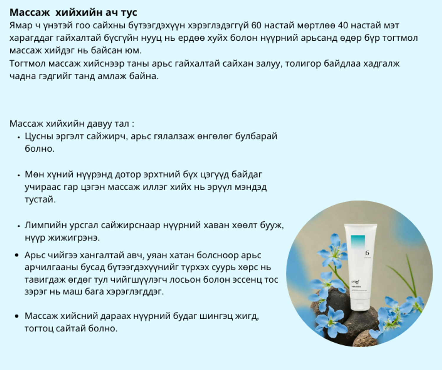 ✔️Арьсанд хүрэх төдийд задарч, иллэг массажийг гайхалтай гулгуулан хийхэд тусална