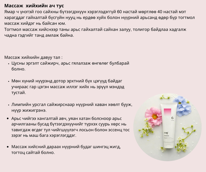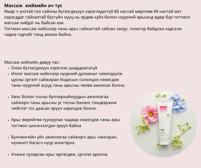 ✔️Арьсанд хүрэх төдийд задарч, иллэг массажийг гайхалтай гулгуулан хийхэд тусална