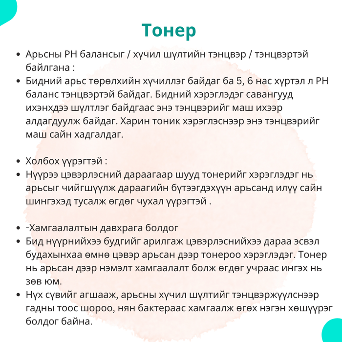 • Арьсны эвэрлэг давхаргыг сайн чийгшүүлж чийгшлийн алдагдлаас сэргийлнэ. Улмаар арьсны зөөлөн болон уян хатан байдлыг хадгалж өгнө