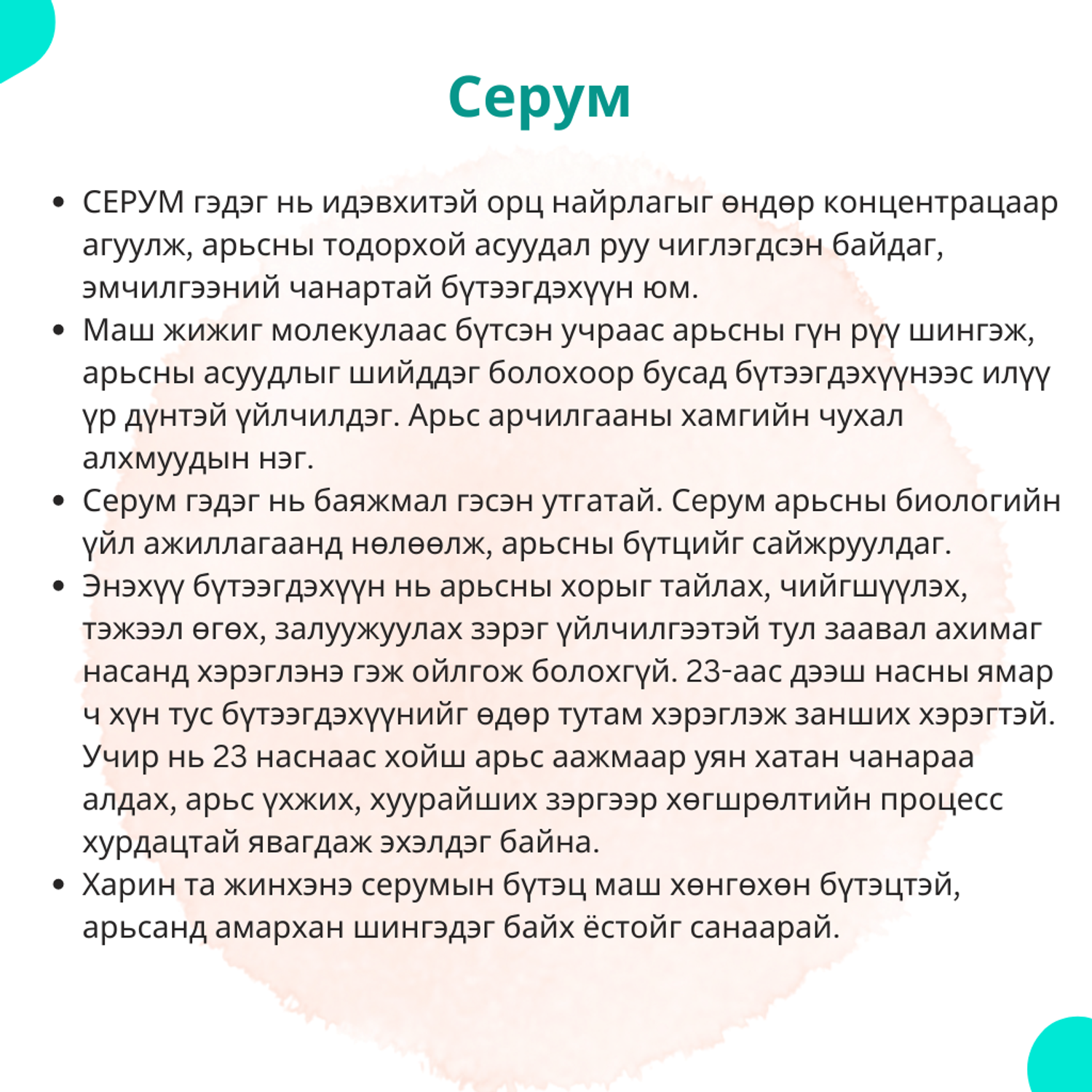 • *Коллаген үйлдвэрлэдэг фибробласт (fibroblasts) эсүүдийн үржлийг идэвхжүүлнэ