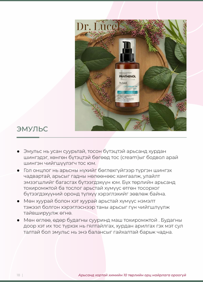 Panthenol нь: В5 ПАНТЕНОЛ: Арьсны эд эсийг нөхөн сэргээж, төлжүүлэн гүн чийгшүүлэх үйлчилгээтэй ком